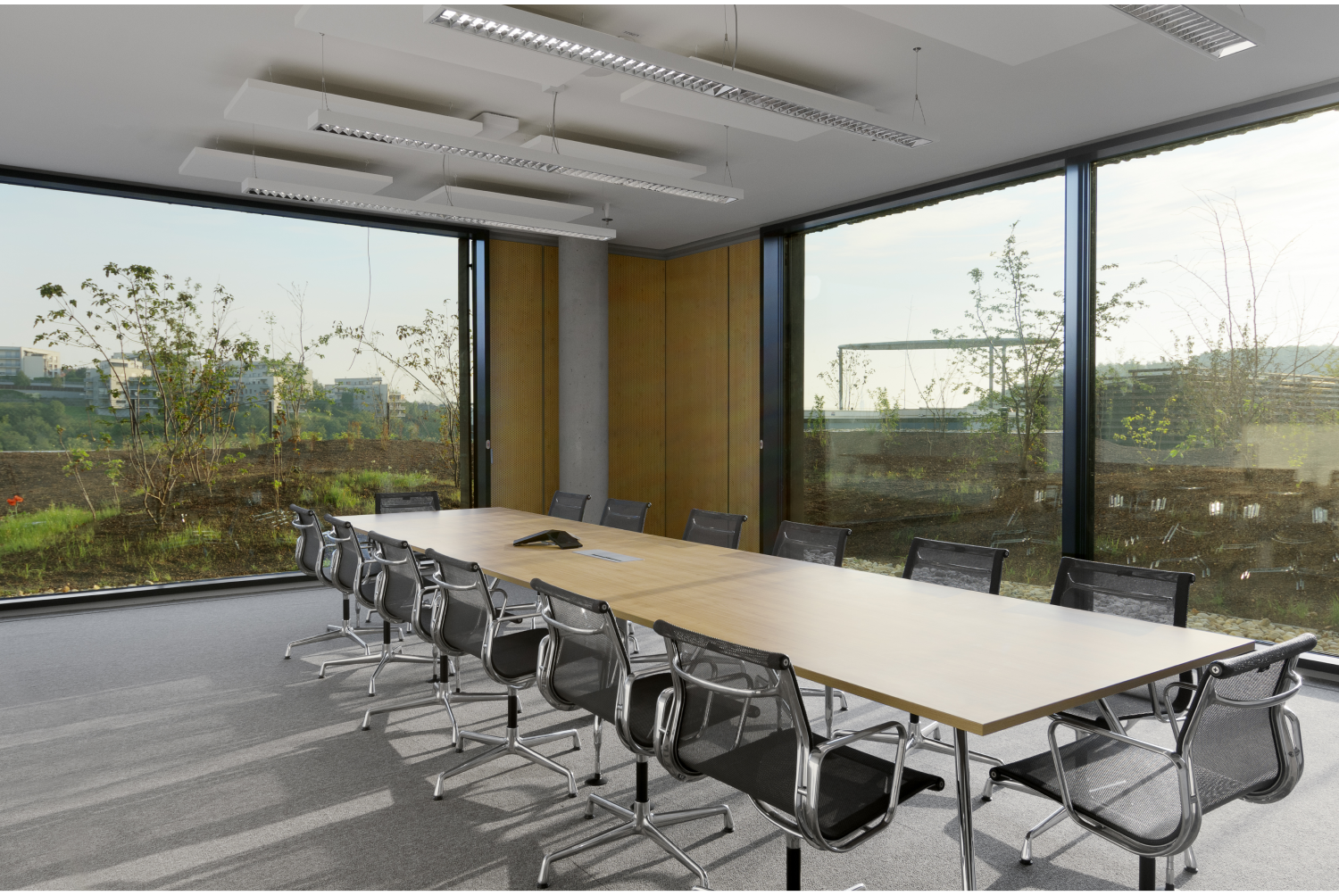 The southern building of the ČSOB – SHQ Campus is designed by the Chalupa architekti studio to blend in perfectly with the surroundings. The building meets high environmental standards and standards according to the international LEED Platinum certification. The roof, conceived as a residential garden, is planted with greenery and thus improves the overall climate in the surrounding area.