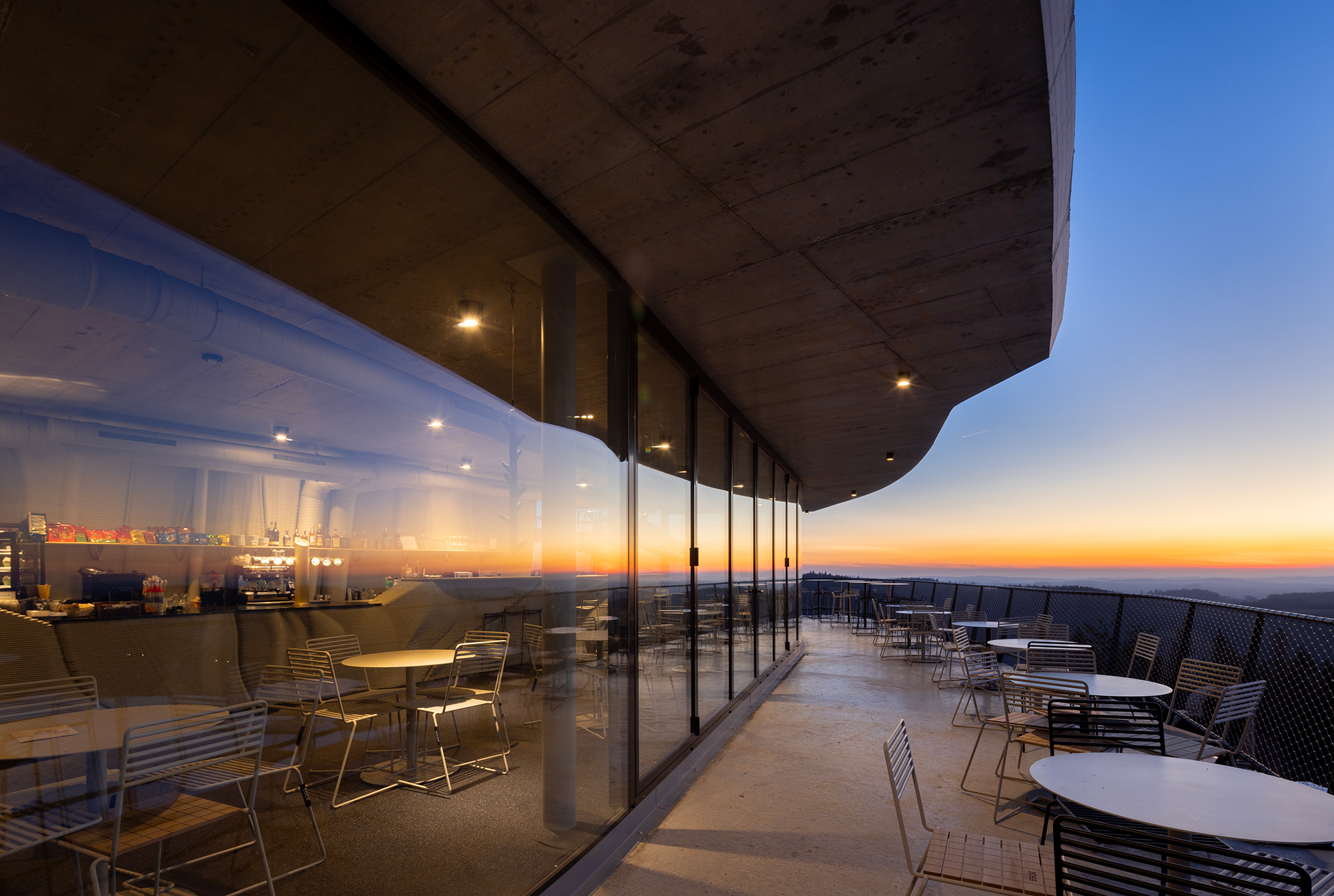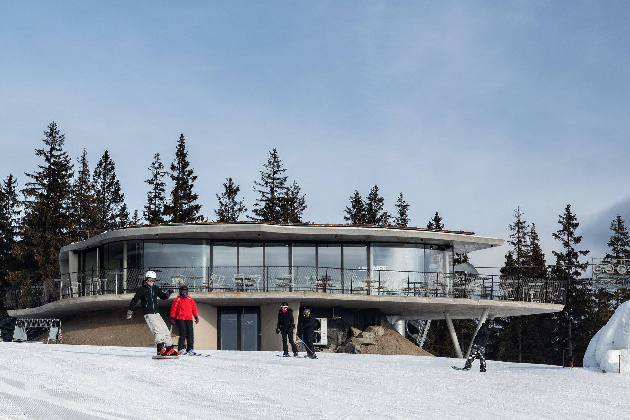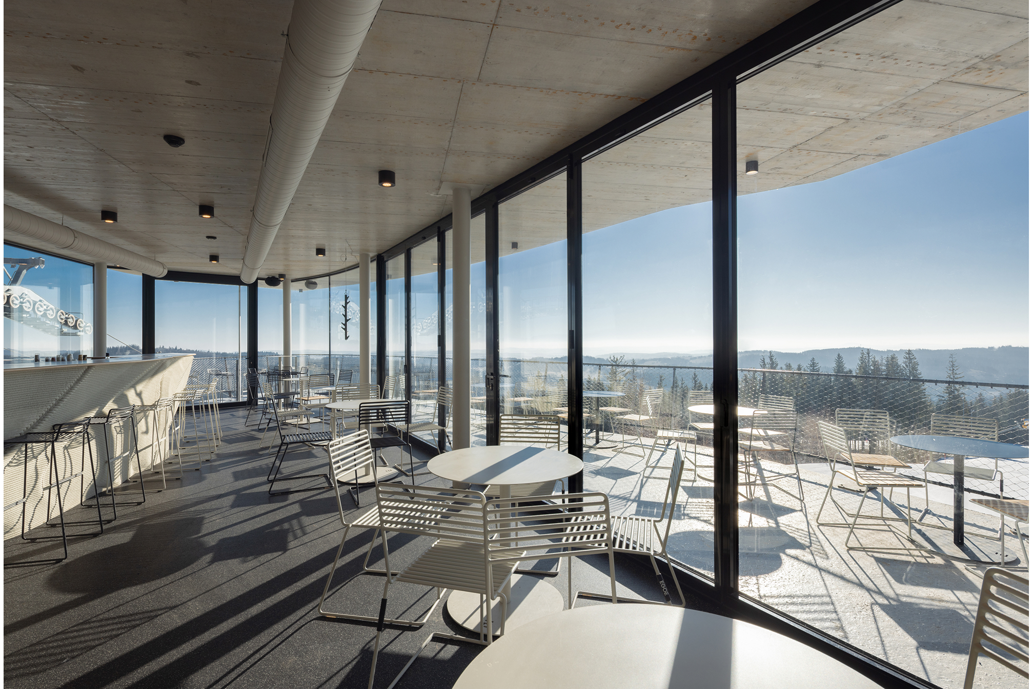 Frameless arched windows offer an absolutely unobstructed view of the majestic Jeseníky landscape. The entire station was built using 3D printing. It is the highest-altitude building in the Czech Republic to have been constructed with this technology.