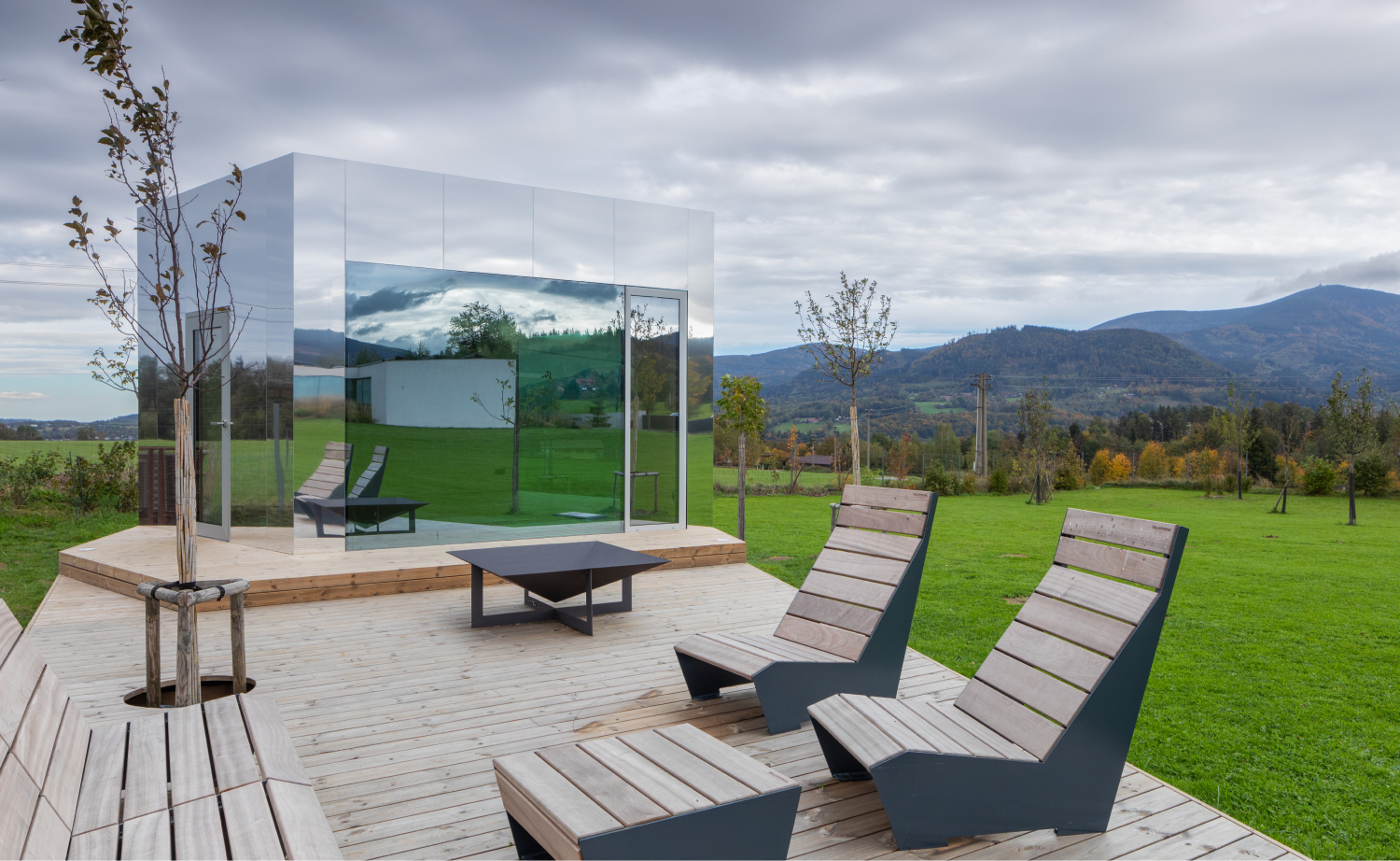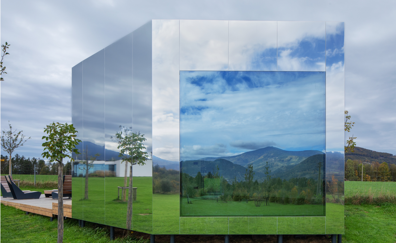 Mirror building in the Beskid Mountains