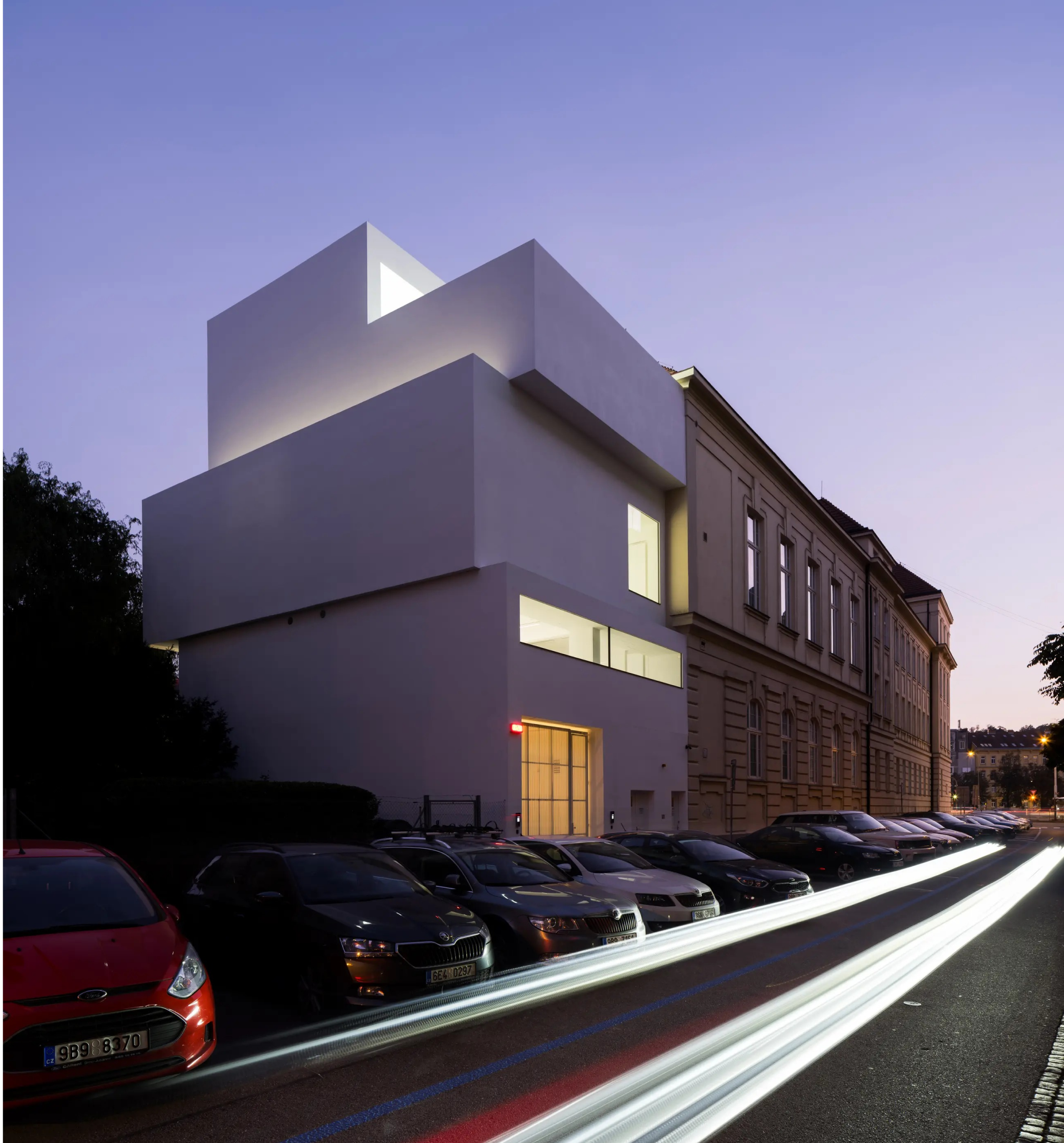 A building with clean and simple shapes that brings to the site a new dynamic charge, in contrast to the adjacent historic buildings.
