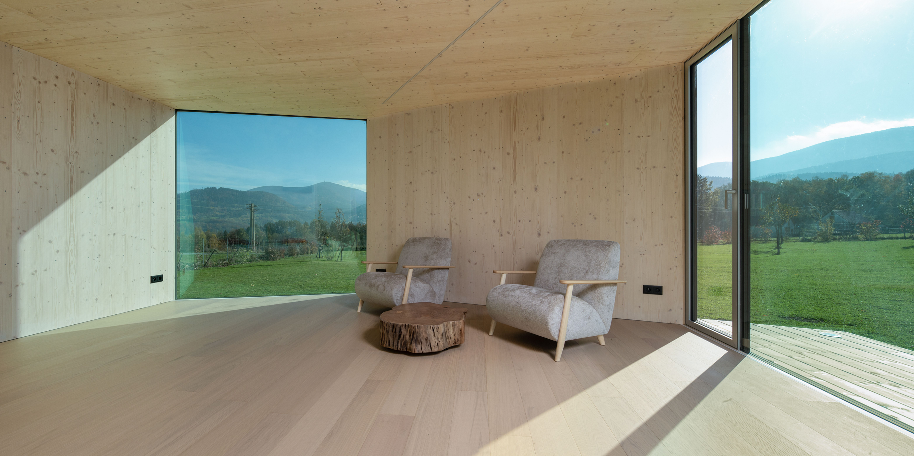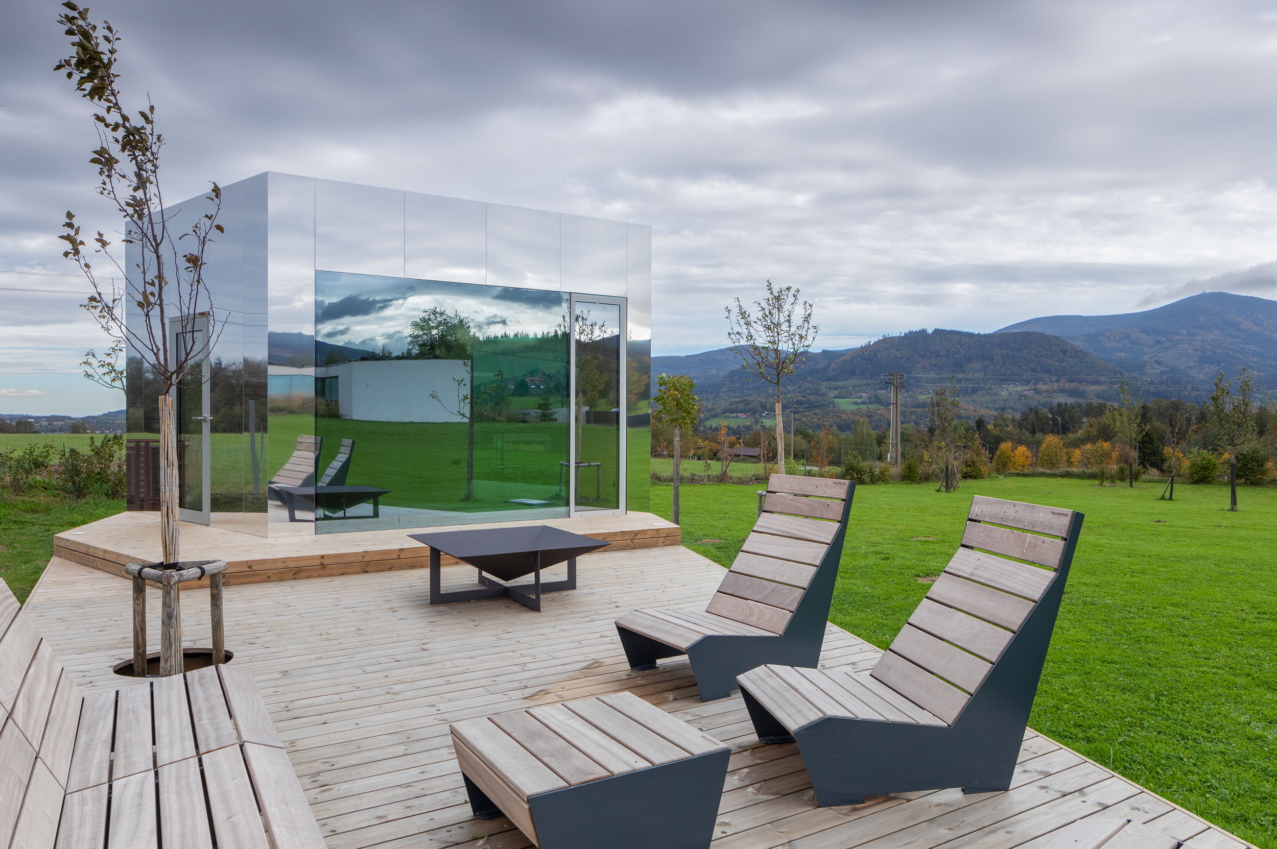 Zrcadlový objekt v srdci Beskyd dokonale splývá s okolní krajinou.
